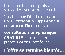 Pour plus d’informations et/ou pour une consultation téléphonique GRATUITE avec l’un de nos conseillers, veuillez compléter le formulaire Nous contacter ou nous téléphoner ou nous envoyer un e-mail dès AUJOURD’HUI!